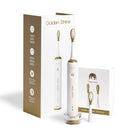 Golden Shine est bien plus qu'une brosse à dents, c'est un véritable bijou technologique qui révolutionne le brossage. Sa technologie Vibrosonic combine vibrations soniques et oscillations verticales, reproduisant fidèlement le geste précis recommandé par les dentistes. Alliant performance clinique et élégance, elle offre à vos dents le soin qu'elles méritent. Un objet du quotidien qui, grâce à son design raffiné, devient un élément à part entière de votre décoration.